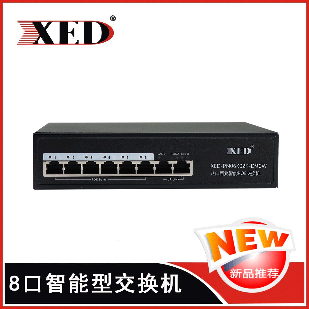 XED-PN06K02K-D90W 6+2 百兆非管理型 POE交換機(jī) 可通過(guò)網(wǎng)線為無(wú)線AP,攝像頭等PD設(shè)備提供最大單端口30W...